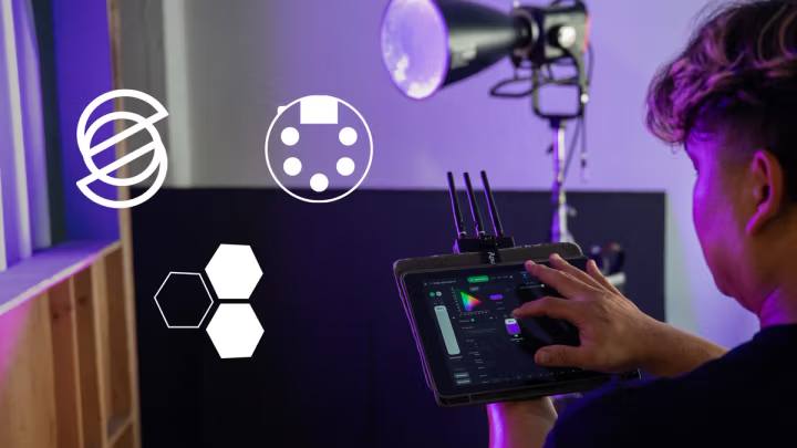 Поддержка проводных и беспроводных протоколов: DMX, RDM, CRMX, а также управление через приложения Sidus Link / Sidus Link Pro по Bluetooth.