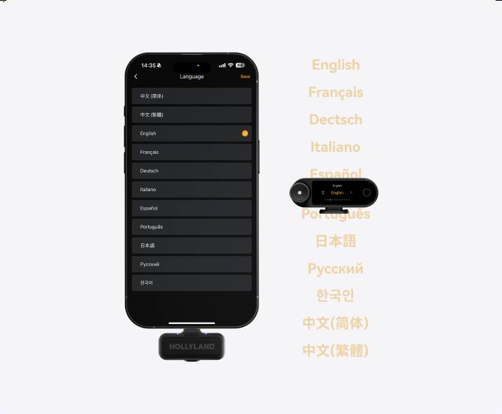 Благодаря поддержке 11 языков на приемнике камеры и в приложении LarkSound вы можете легко сотрудничать без границ. Сосредоточьтесь на своем творчестве, а не на настройках