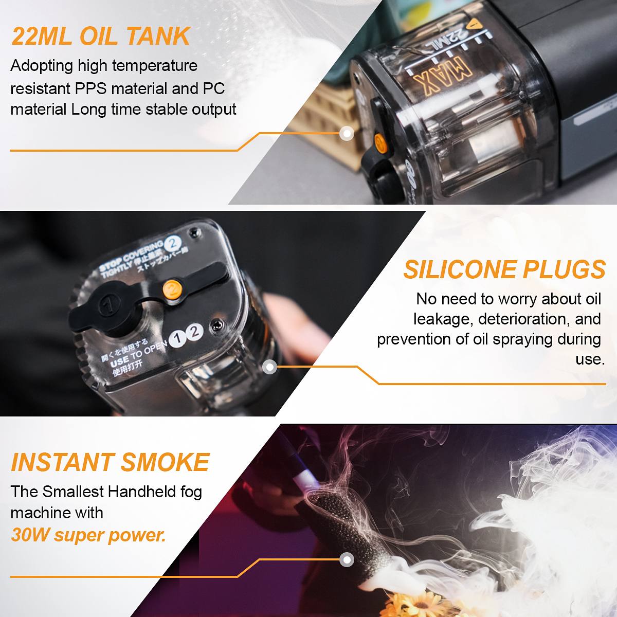 Пожалуйста, не забудьте добавить дымовое масло и подождать 30 секунд, прежде чем включить дымовую машину, Предотвратите безмасляное сухое горение, что приведет к повреждению дымовой машины